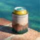 This can cooler is perfect for fall-themed mountain weddings. The design features a rust terracotta mountain range with olive green trees.