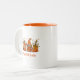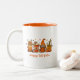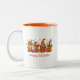 Cute Fall/Halloween mug with coffee drinks, pumkins, gnome, latte and leaves.