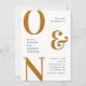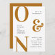 Bold typography monograms wedding invitation + details and QR Code on back side in mustard yellow and ochre colours. Suitable for fall / autumn wedding.