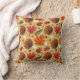Fall pillow cushion. Pattern with autumn leaves in brown, red, orange, and green colours.