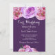 Floral blush pink violet peonies on dark purple plum background making a rustic trendy autumn wedding invitation template. The invitation is ideal for elegant outdoor, garden, summer or fall weddings or other parties.