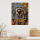 Fall Prowler: Raccoon on Weathered Fence Poster