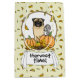 Fall Pug - Cute Pug surrounded by falling autumn leaves, pumpkins, pine cones, and happy squirrel friend holding an acorn. Copyright © Angi Laframboise. Funny seasonal and holiday dog breed cartoon gifts for dog lovers.