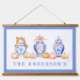 This chic wall tapestry features 3 different ginger jars with orange bows and pumpkins. The border around the card is a blue border. You can personalize with your name.