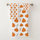 This cute pumpkin bath towel set featuring orange pumpkins and whimsical fall leaf branches. A great way to decorate your bathroom for Halloween or Thanksgiving.
