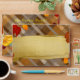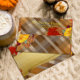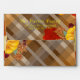 Personalized Thanksgiving envelope design featuring pumpkins, leaves and red berries on a autumn coloured plaid background. In the centre of the design there is a gold brushstroke and on the back of the envelope your name and address. To change it use the Personalize option. For more changes, such as changes to the font, font colour or text layout, use the Edit design tool option.