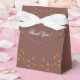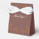 Add a touch of autumn charm to your celebration with these personalized Fall in Love Bridal Shower favour boxes, the perfect addition to your Autumn Bridal Shower festivities. Designed in a boho chic style, each box features delicate autumnal acorns and falling leaves in soft rustic shades of mocha browns, oranges, and red berries intertwined against a dark mocha background. The elegant design combines modern and sophisticated calligraphy fonts, making these favour boxes an unforgettable way to thank your guests. Ideal for holding small treasures or treats, these Fall Bridal Shower favours will be a memorable keepsake from your special day. Thank you for celebrating love and fall in the most beautiful way!