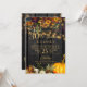 Beautiful rusty orange and dark burgundy autumn fall flowers and pumpkin borders with strings of golden twinkle lights over a dark brown barn wood background making a charming elegant 30 years birthday party invitation with a trendy handwriting gold typography script. +++++++++ Easy to personalize with your details! Suitable for traditional rustic | country | farmhouse | outdoor backyard family and friends gatherings.