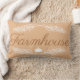 Farmhouse elegant rustic orange throw pillow featuring hand drawn wheat stalk laurels with pumpkin accent and the word "Farmhouse" in script. The backside of the pillow has your family's monogram letter and name in script.