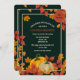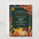 A stunning fall invitation with a dark background, colourful falling leaves and pumpkins. Beautiful for any autumn celebration. (<a href='https://www.freepik.com/free-vector/thanksgiving-day-posters-in-vintage-style_1429935.htm'>Designed by Freepik</a>). <br/><br/>The card is easy to customize with your wording, font, font colour, paper shape options and choice of six paper types.<br/><br/>Not exactly what you're looking for? All our products can be custom designed to meet your needs at no extra charge.<br/><br/>Simply contact us at askpixieprints@aol.com.<br/><br/>Coordinating products available: Just ask us!