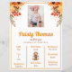 Perfect for fall farm, pumpkin or sunflower theme parties. Remember all of your one year olds precious moments with this custom first birthday milestone poster. This fun fall birthday poster can be customized using the personalization feature.
