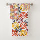 This towel set has a Fall art deco design of swirls in yellow, gold, orange, cranberry, and navy on a field of white. If you want the same design with different colours, message me.