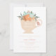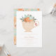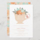 Fall inspired tea party bridal shower invitation includes a teacup filled with flowers in warm autumn colours and coordinating floral back.
