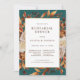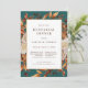 Fall Teal Rehearsal Dinner Invitation. Set the tone for a warm and welcoming evening with this beautifully designed rehearsal dinner invitation from the Teal Terracotta Fall Leaves Floral Collection. Featuring hand-painted watercolor artwork of burnt orange and terracotta leaves, cream and beige dahlias, and copper and rust-hued roses set against a deep teal background, this invitation evokes the essence of autumn elegance. The rich seasonal colours create a perfect blend of rustic charm and refined style, making it ideal for a cozy dinner gathering before the big day. Start personalizing your invitation and give guests a preview of your unforgettable fall celebration.