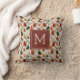 Fall terra cotta and sage leaves pattern monogram throw pillow