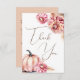 Fall themed boho bridal shower wedding thank you cards, dusty pink pumpkin dahlias pampas grass thank you card