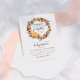 Set the theme for an extraordinary autumnal baby shower with this little pumpkin design. This design features a hand painted watercolor wreath of orange and burgundy flowers with green leaves and two pumpkins. Your custom details appear below in a modern typography.