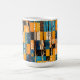Fall Trees Autumn Leaf Colours Patchwork Pattern ceramic coffee mug in golden yellow, turquoise blue and black. Brighten up your mornings and afternoon pick me ups with this beautiful woodland mountain nature inspired fall leaves and trees pattern mug. Warm cozy outdoor vibes for your autumn coffee breaks. These autumn patchwork pattern coffee mugs make a charming gift that will delight family and friends.
