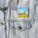 A cheerful button for the autumn season featuring a red barn with a pumpkin patch ready for fall decorating and the leaves are changing colours on the trees, drawn in ink with watercolor. Fun for a button collection, to give to customers, and for button exchanges!