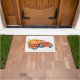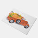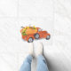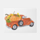 Orange vintage pickup truck with pumpkins and sunflowers in the back