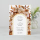 Fall Botanical Wedding Foil Invitation. This elegant and rustic real gold foil frame wedding invitation features hand-painted watercolor burnt orange and terracotta leaves, cream and beige dahlias, and beautiful rust-coloured roses perfect for a fall or autumn wedding! The back of the invite has a simple white background with a coordinating bouquet and wedding monogram.