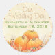 Pretty harvest pumpkins- "Autumn Wedding" guest favour sticker. Fall colours with the bride and groom's names and wedding date. Personalize this chic, beautiful Autumn wedding guest favour sticker with your customized text. To see matching products- Please visit my store- "The Hungarican Princess" at www.zazzle.com/hungaricanprincess*. Look in my "Wedding" department category. Congratulations!