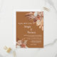 Let your guests know about your special day with this boho chic wedding invitation with flowers and feathers. This invitation has a simple and elegant design with a brown background and a delicate floral and feather border. You can edit the text to suit your style and add a photo of your choice. This invitation is ideal for a boho, vintage, or romantic wedding theme.