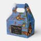 Beautiful monarch butterflies with their gold and orange fall colours flutter on a mixed medium blue background, subtle botanicals, andHh butterfly silhouettes. Make this gift box part of your magical fall wedding day as a guest gift box or welcome. Personalized with your couple name More styles available.