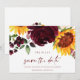 Fall Wedding Save the Date Cards - Sunflowers & Burgundy Red Roses Watercolor Floral Bouquet