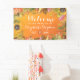 Wedding Welcome Banner Templates - Elegant Autumn Maple Leaves, Pumpkins and Sunflowers Watercolor Flowers on Orange Gradient Background.