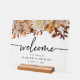 Welcome your guests in style with the Clear Fall Welcome Acrylic Sign from the "Fall Black Terracotta Floral and Leaves Wedding Invitation Collection." This stunning sign features hand-painted watercolor burnt orange and terracotta leaves, cream and beige dahlias, and copper and rust-coloured roses capturing the essence of an autumn wedding. Create a cohesive and unforgettable experience from the moment your guests arrive. Personalize now to ensure every detail of your special day reflects the same exquisite style!