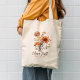 These bags were super cute (I purchased 3). The material is more of a canvas look & feel. The colour of the bag is slightly off white, but the letters look exactly as pictured. I took 3 photos in different lighting. Would recommend! I liked how there was an option to choose the font and colour of the name. The words are legible and the colours are exactly as pictured.