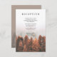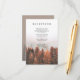 Add your wedding details to your reception with this Fall and winter pine trees forest photo chic wedding with red and orange pine trees showing a wonderland of wood land , with clouds with elegant and modern typography.