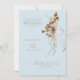 Watercolor Fall boho wispy Floral Wedding Invitation. Gold text. Sky Blue. Bride Parents.