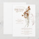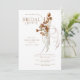 Watercolor Fall boho wispy Floral Bridal Shower Invitation. Gold text. White.