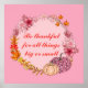 Decorate your room, living room or office with this beautiful fall poster. The design features a fall wreath made from pumpkins, flowers and leaves in fun shades of pink and orange with a quote inside. This poster can be personalized with your own text.