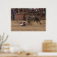 Fallen bull rider is charged by angry bull in a rodeo competition