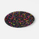 Falling Confetti - Rainbow Colours on Black Paper Plate