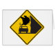 International style road and highway warning sign advising of danger of falling elephants. Great gag gift!