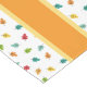 A Fall Table Runner With Colourful Falling Leaves In Green, Red, and Orange With Centre Orange Stripe
