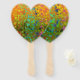 Multi colours hearts on orange background.