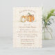 Celebrate the bride-to-be with this effortlessly charming fall bridal shower invitation. Featuring two beautifully illustrated pumpkins tied with bows, the soft, neutral colours capture the cozy essence of autumn. The elegant scalloped edges and whimsical text “Falling in Love” add a perfect touch of seasonal romance. Whether you’re planning a rustic gathering or an intimate celebration, this invitation is designed to complement your fall or countryside wedding theme. Customizable with all the event details, it’s the perfect way to invite guests to shower the bride with love and well wishes.