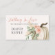 Make your baby shower extra fun with our Falling in Love with Baby diaper raffle enclosure card. The front features the collection’s signature design a soft creamy white background with a charming white watercolor pumpkin, eucalyptus sprigs, blush roses, pampas grass, and pheasant feathers and warm rust terracotta lettering of Falling in Love with Baby. Beneath the title, customizable text allows you to add your own special message, followed by Diaper Raffle in matching style. The reverse side provides a fully editable space for guests to write their names and includes customizable instructions for entering your diaper raffle. Perfectly coordinated with invitations, tableware, signage, and more from the Falling in Love with Baby collection, this card blends rustic autumn charm with elegant seasonal style.