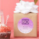 Falling Pink Glitter, 80th Birthday Thanks, are glamourous Classic Round Stickers for her. These personalized Thank You Favour Stickers are elegantly drawn and designed to show appreciation toward your guests.