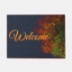Looking up through the branches of a towering tree in autumn. The falling leaves of burgundy, red, gold, orange, yellow, and blue sparkle against the deep blue sky.