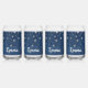 Stylish can glass set features beautiful night sky dark blue celestial background with falling silver stars.  Customize with name or other special message.  Perfect for wedding party gifts, birthdays, graduations and more.