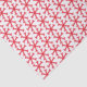 Gift wrapping tissue paper with a red snowflake pattern over a white background.