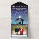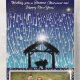 Original design falling stars in a blue black sky, over a silhouette nativity. Add a keepsake family photo on the inside, that is detachable. Photo will be embellished with star twinkles. Personalize all text. All star twinkles can be dragged to where you would like around your text.