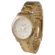 This gold tone women's watch features a petite Gold coloured crown at 12:00, a sheer Beige face with Golden time markings and your personalized monogram shown in fancy script. Has text of "Families Are Forever" beneath the monogram.