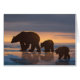 Une mère ours polaire et son petit traversent le flux de glace avec le soleil arctique couchant derrière eux. L'art informatique de Kathie Miller.